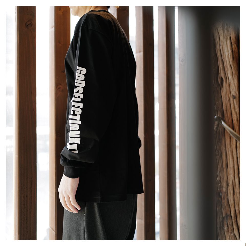 GODSELECTIONのTシャツは一度着用するとリピートする方がおおいアイテムの一つ、海島綿を使いやや地厚な素材感でとても気持ちの良い着心地です。
