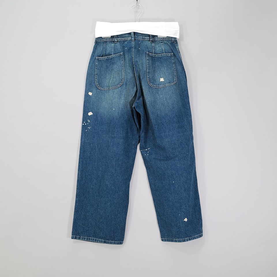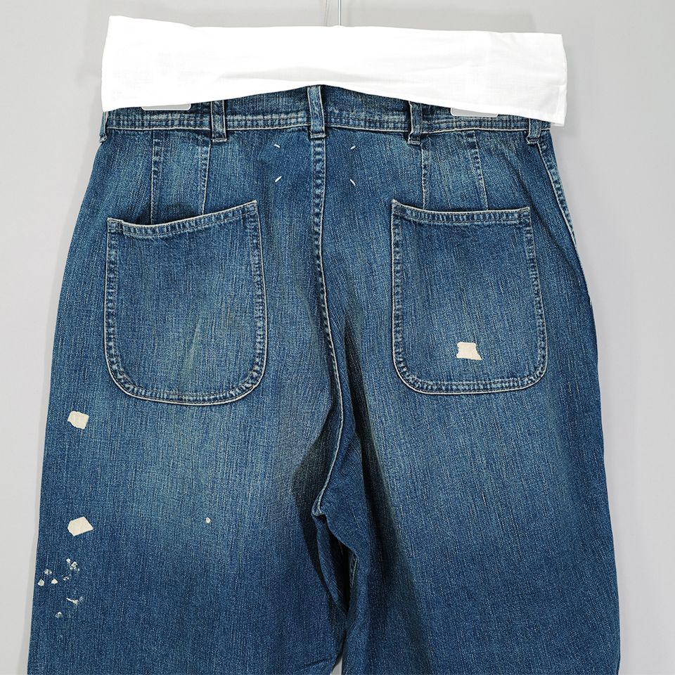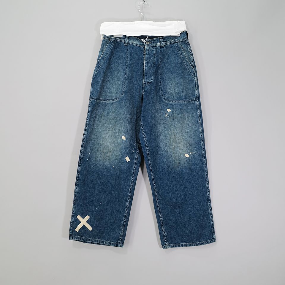 ペンキ汚れや裾のX等、特徴的な表情を持った軽めのデニムパンツ。