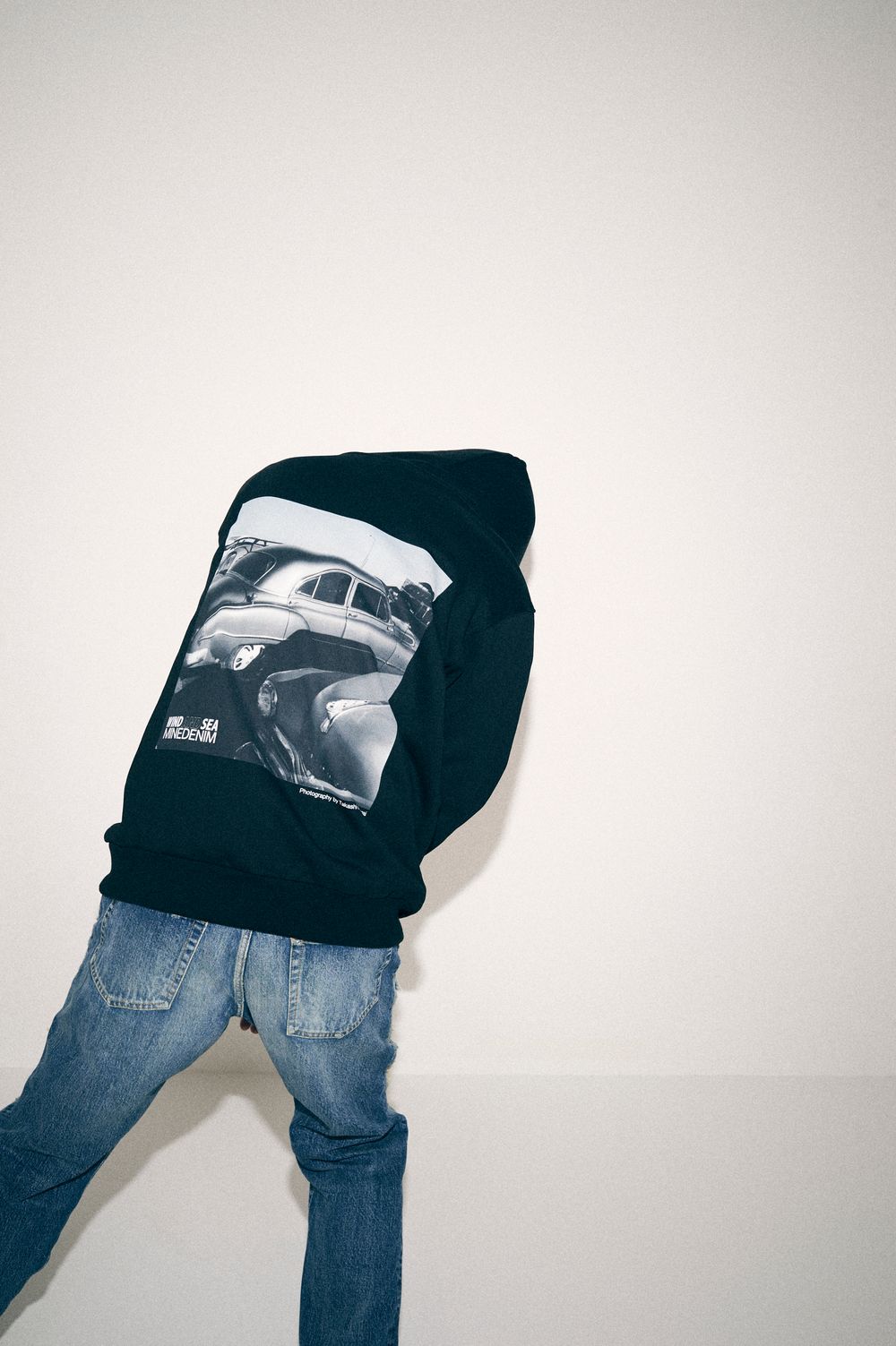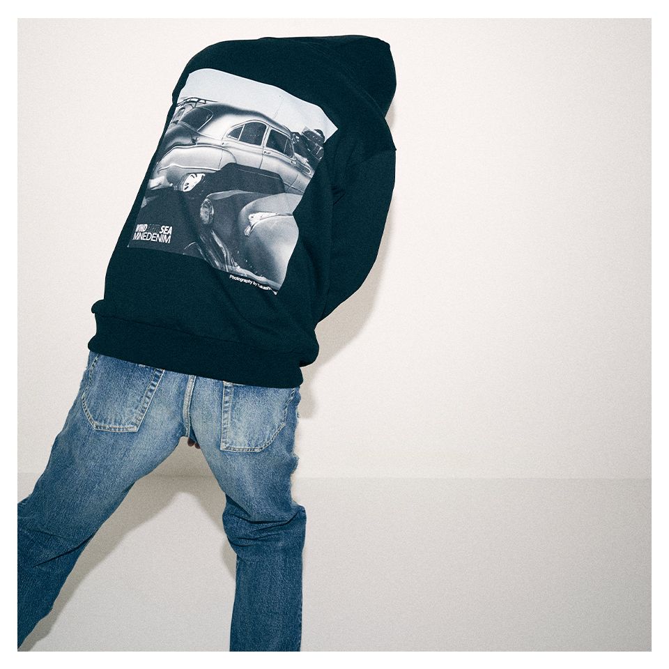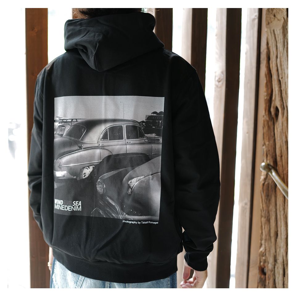 背面にWIND AND SEAのディレクター熊谷隆志氏が撮り下ろしたフォトを大胆にプリントしたフーディー。