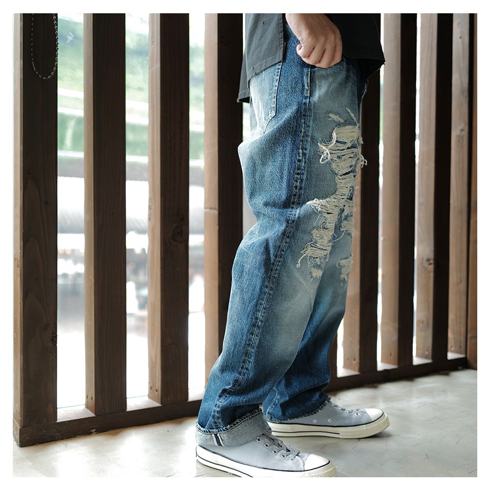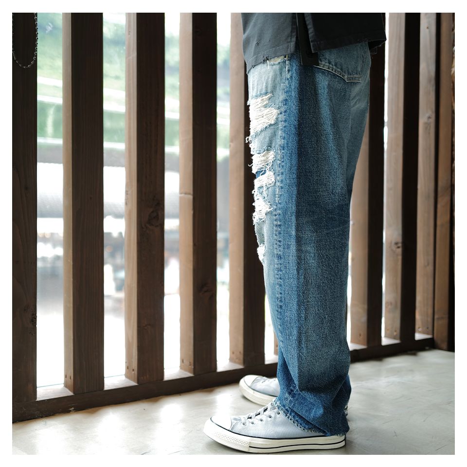 ・生機のまま用いる事によって生まれるリアルな表情のヴィンテージUSED加工に加え、ハードなクラッシュダメージ&リペア