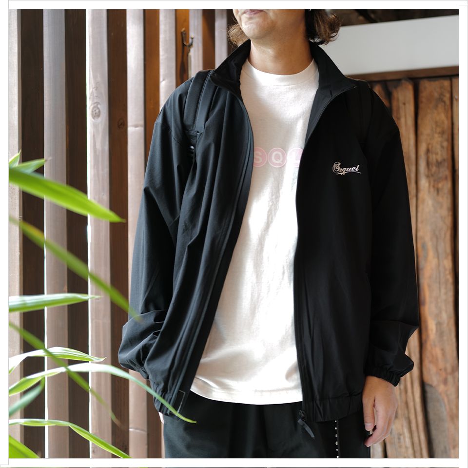 まずはブラックのワンポイント刺繍がデザインされたナイロンジャケット。