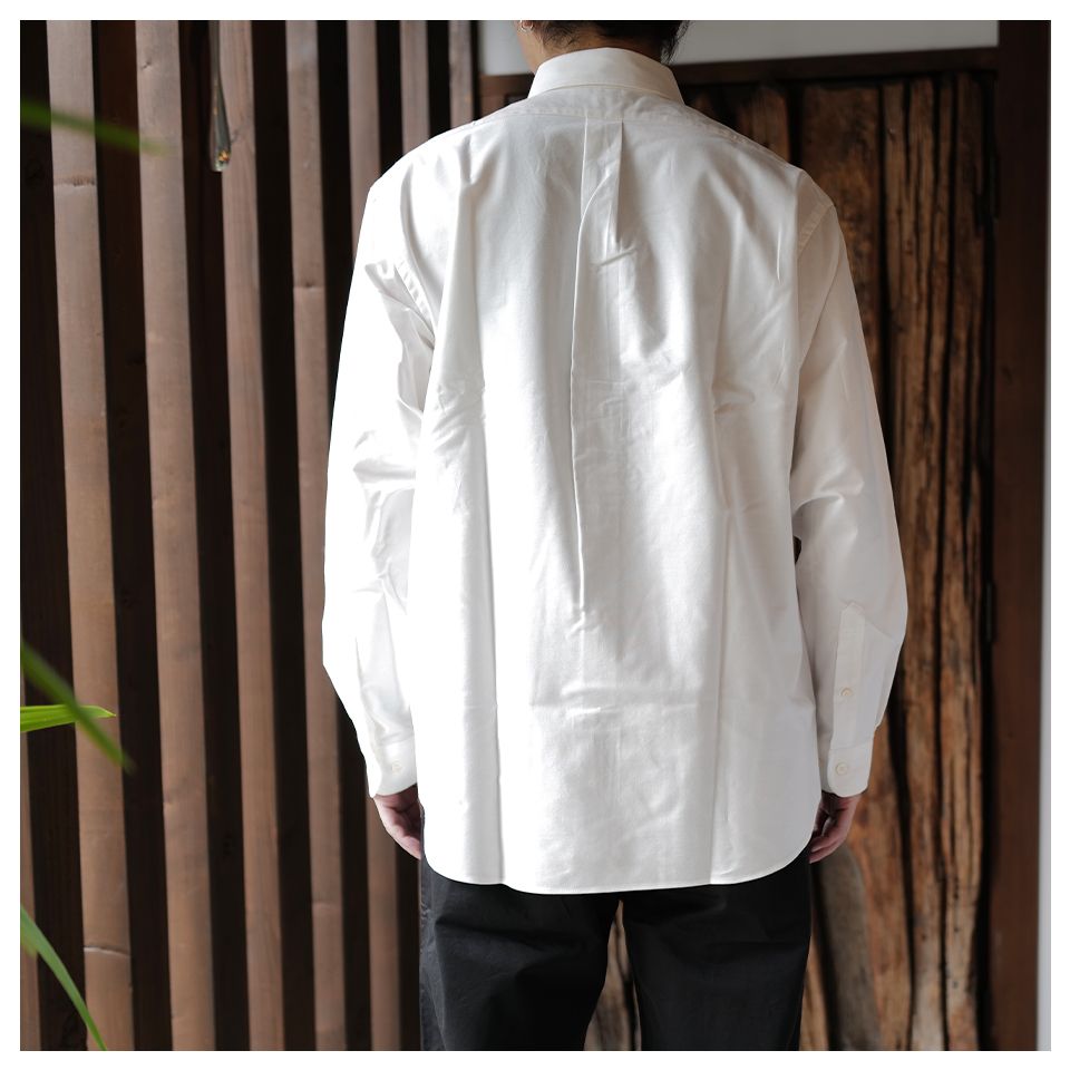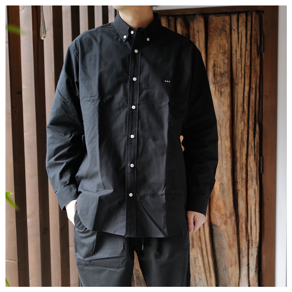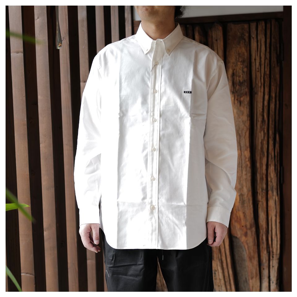 左胸にXXXのワンポイントワッペンがデザインされたボタンダウンシャツ
