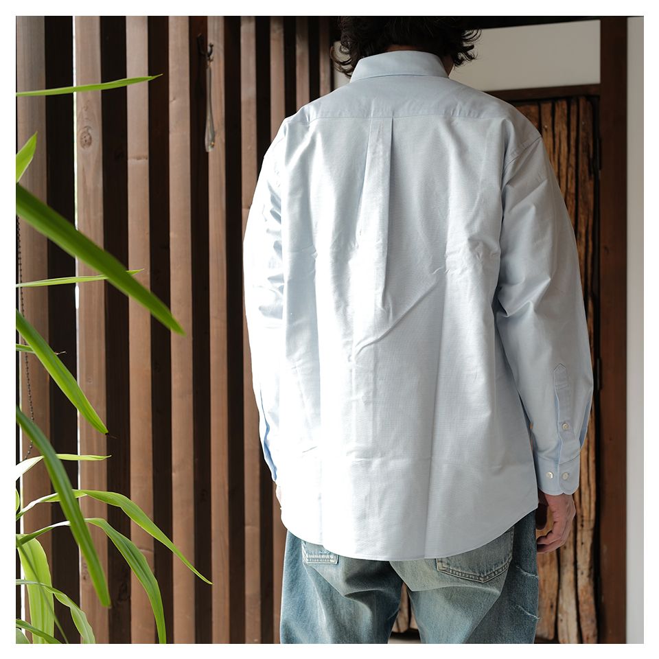 清涼感のあるオックスフォード生地は、夏場の羽織りシャツとしても◎。1枚でさらりと着るのはもちろん、Tシャツとのレイヤードもおすすめです。