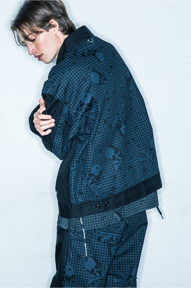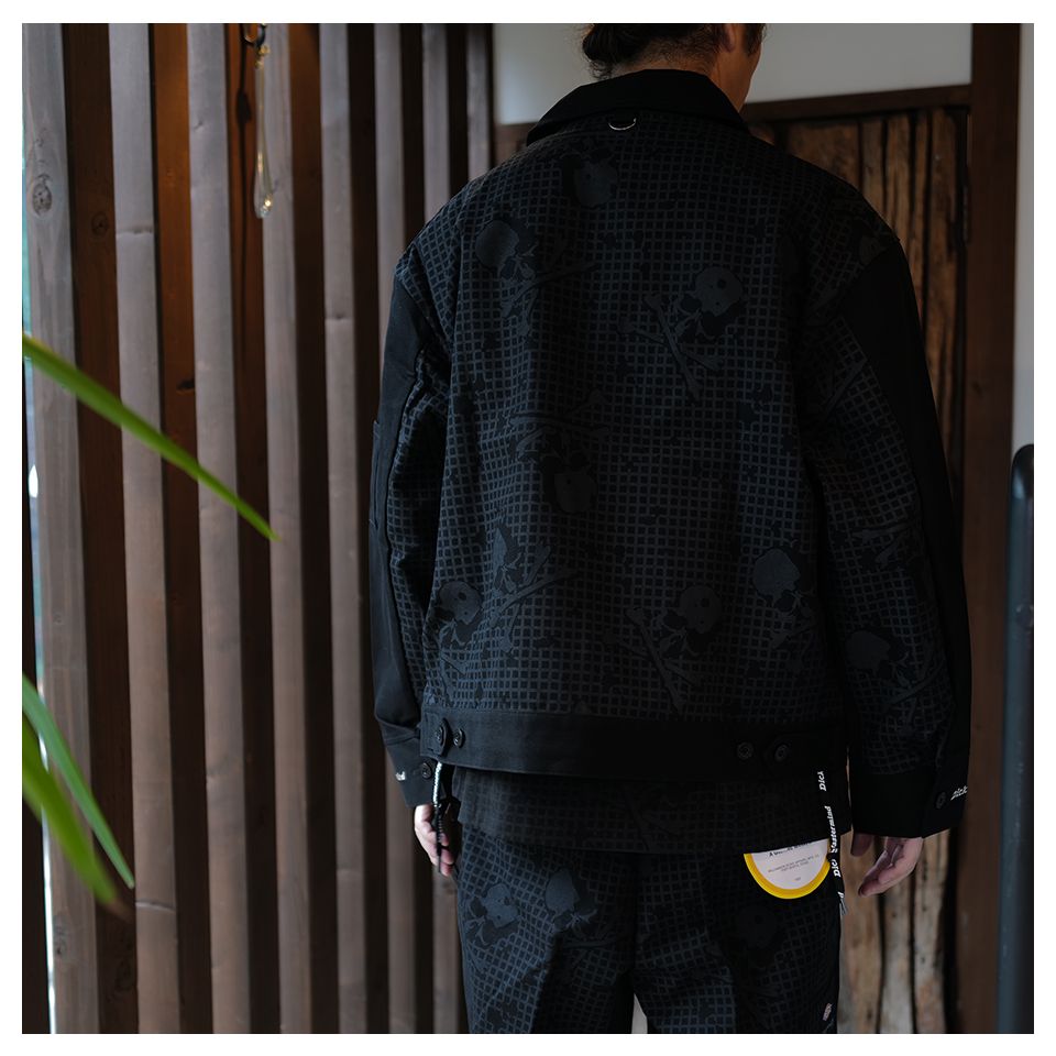 タフなダック地を使用した定番ジャケットに、mastermindらしいブラックベースのカラーリングとスカルロゴをプラス。ストリートに映える一着。