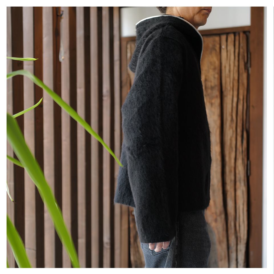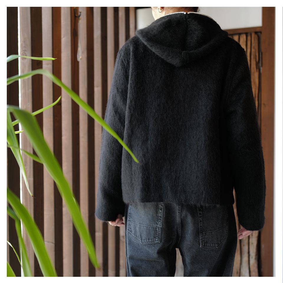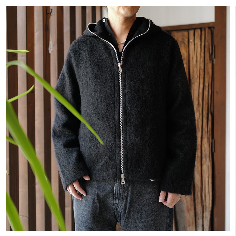 モヘア混のヘアリーウール素材を使用したフルジップパーカー。