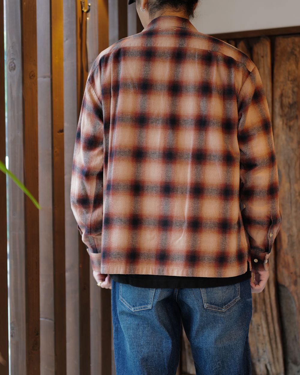 ヴィンテージアーカイブから着想を得てリデザインされた、MINEDENIMを代表するオリジナルプレイドシリーズより、オンブレーフランネルのオープンカラーシャツが登場。