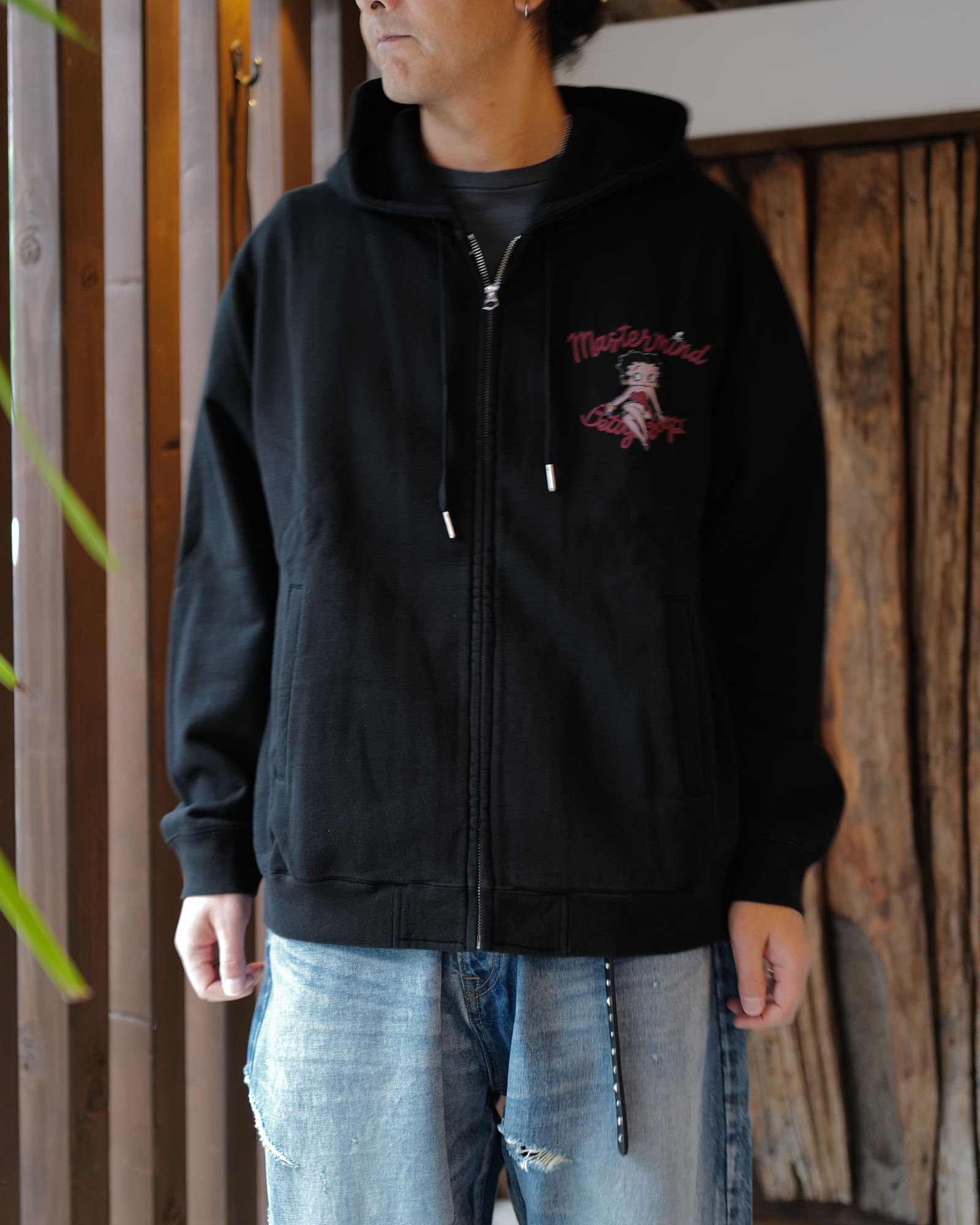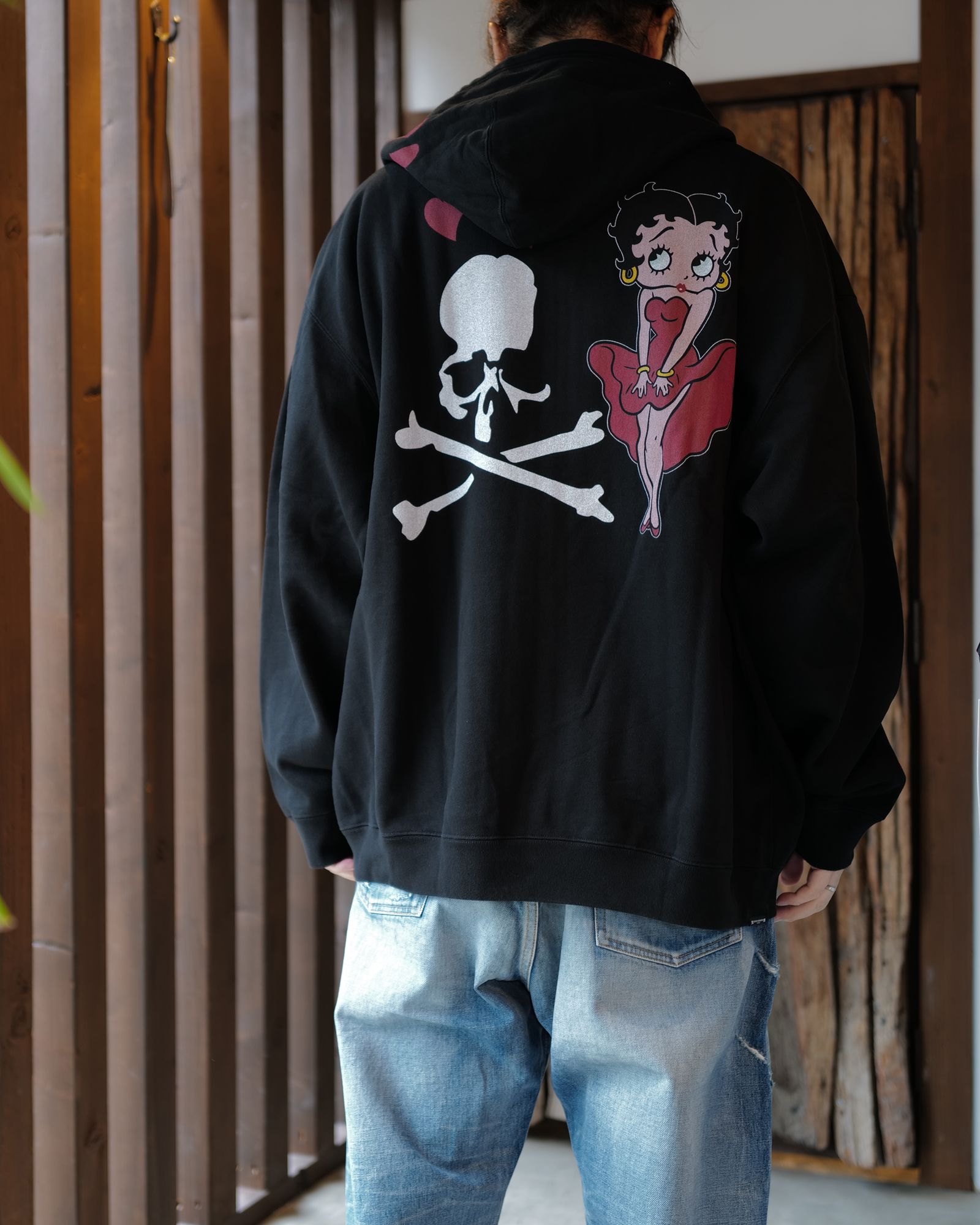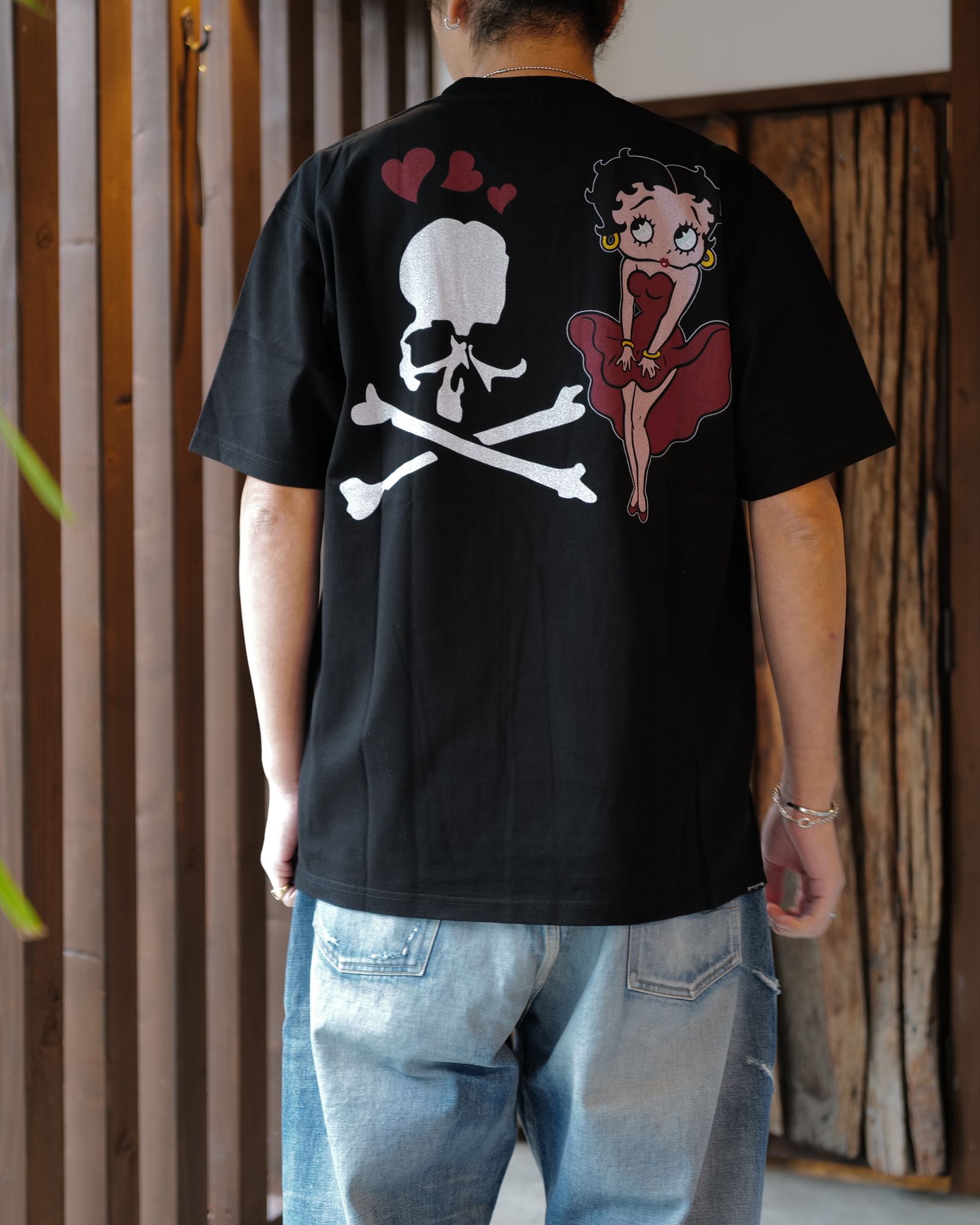 ベティのポップなグラフィックを、マスターマインドらしいモノトーンとスカルモチーフで再構築。