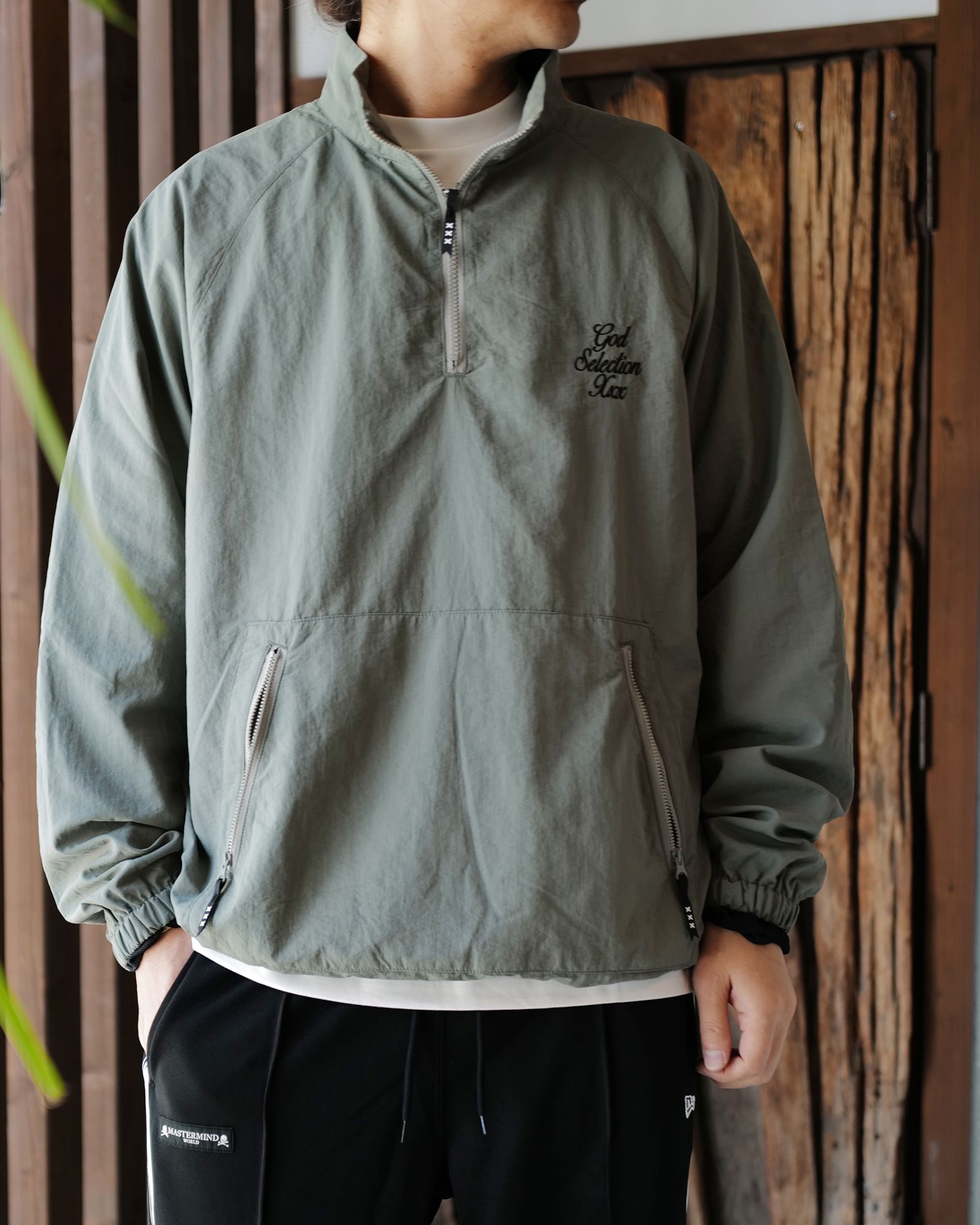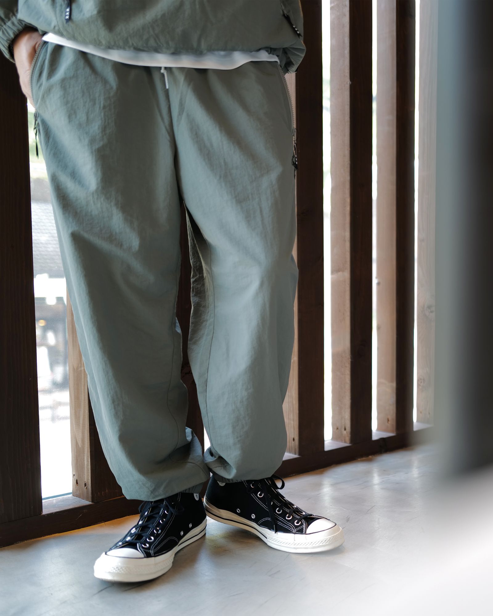 ナイロンのセットアップは、裏地にメッシュ素材を採用した秋冬仕様。適度な保温性がありながら軽やかな着心地が魅力です。今季はブランドとしても珍しい〈OLIVEカラー〉を採用し、新鮮な印象に仕上がっています。単品でもセットアップでもスタイリングを楽しめる万能なアイテムです。