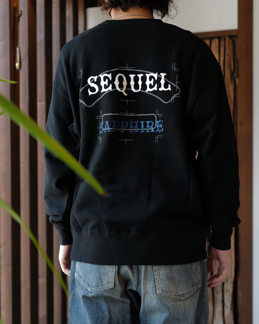 左袖をWHITEのニットに切り替えたデザインが最大の特徴で、異素材のコントラストがスタイリングのアクセントに。内側には「TEAM SEQUEL」のプリントを配し、さりげなくブランドらしさを主張します。