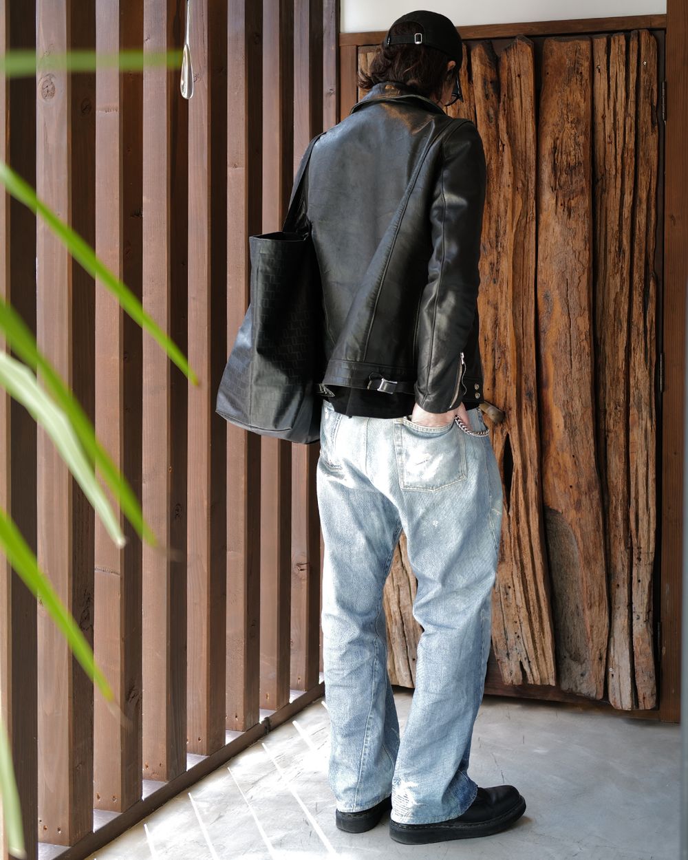 足元は昔買ってあまり履いていなかったブーツを引っ張り出して、ソールをカスタムして軽くしています。見た目の重さと履きやすさのバランスがちょうどいい感じです。