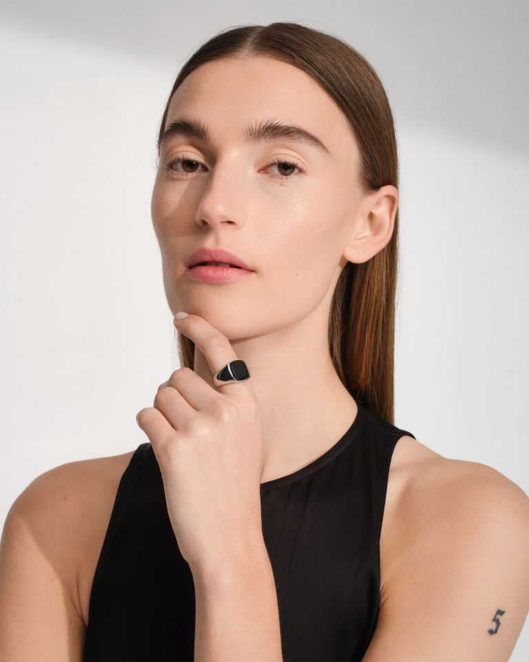 TOMWOODの代表的な定番クッション・ブラックオニキス・リング。
