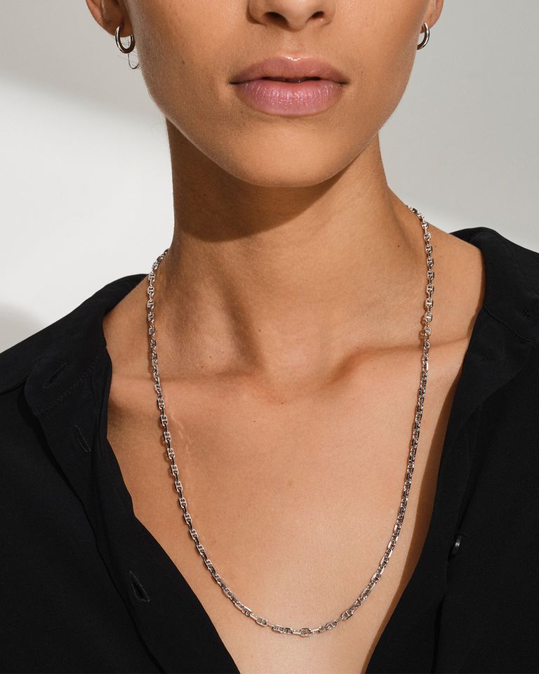 クラシックなモチーフをデザインしたチェーンネックレス。62.2㎝と長めの設定でシンプルに垂らして使っても目を惹きます。
