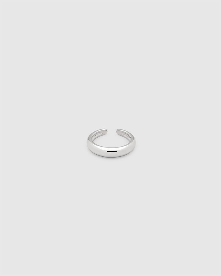 このカフはポリッシュ仕上げのスターリングシルバー925製で、表面を強化し変色を防ぐためにホワイトロジウムプレーティングが施されています。