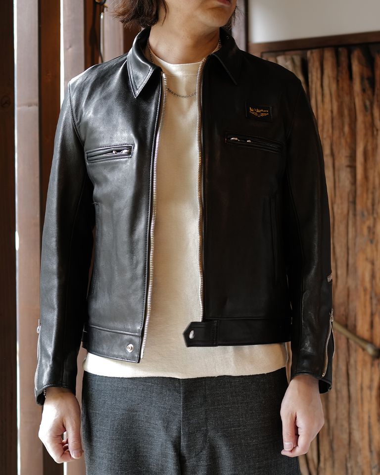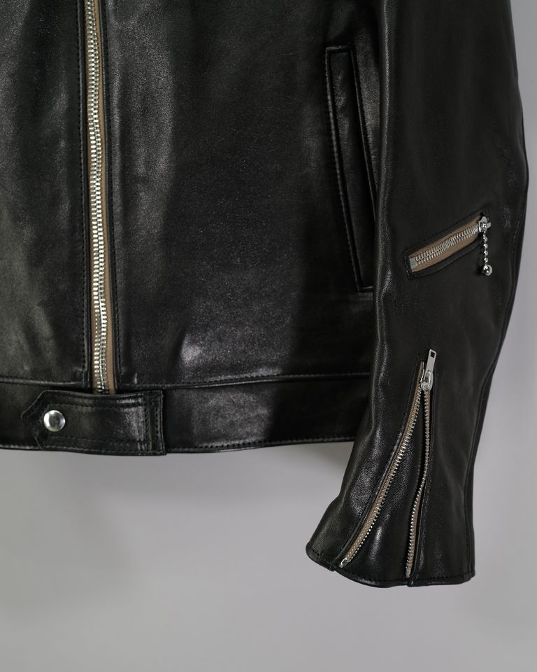 Dominator -ドミネーター- 【Slim-Fit】 (シープレザー / 裏地:タータンチェック / ベージュジップ)Black