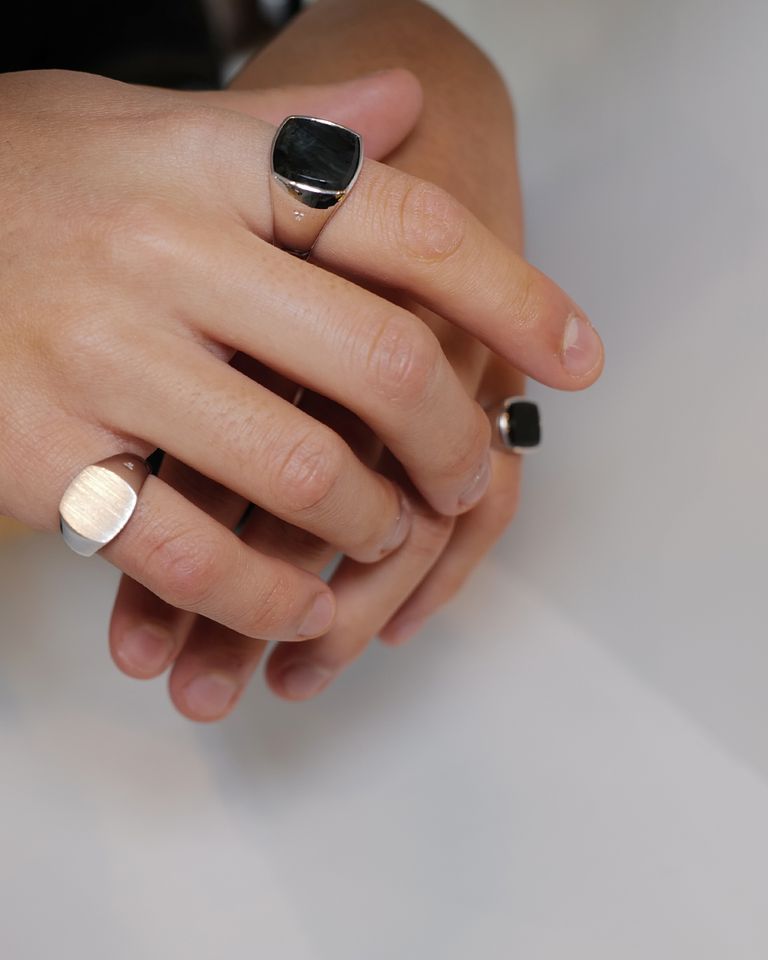 Cushion Black Larvikite (M) / リング (ブラックラルビカイト) / シルバー925 (ユニセックス)