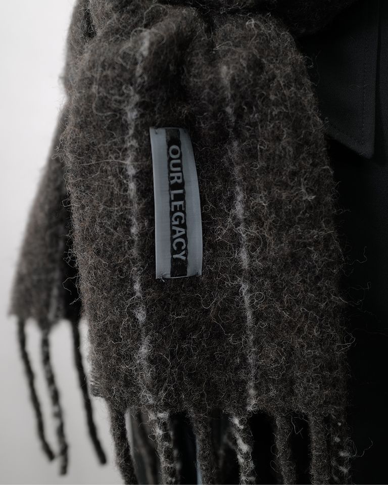 ブラウンのピンストライプ、ファジーアルパカを使用したアワーエステートスカーフ。