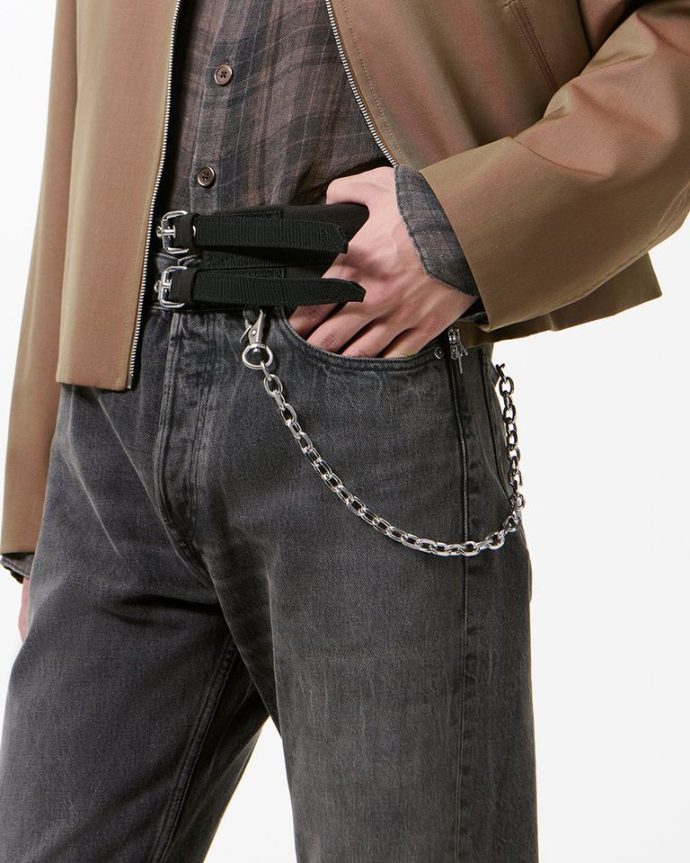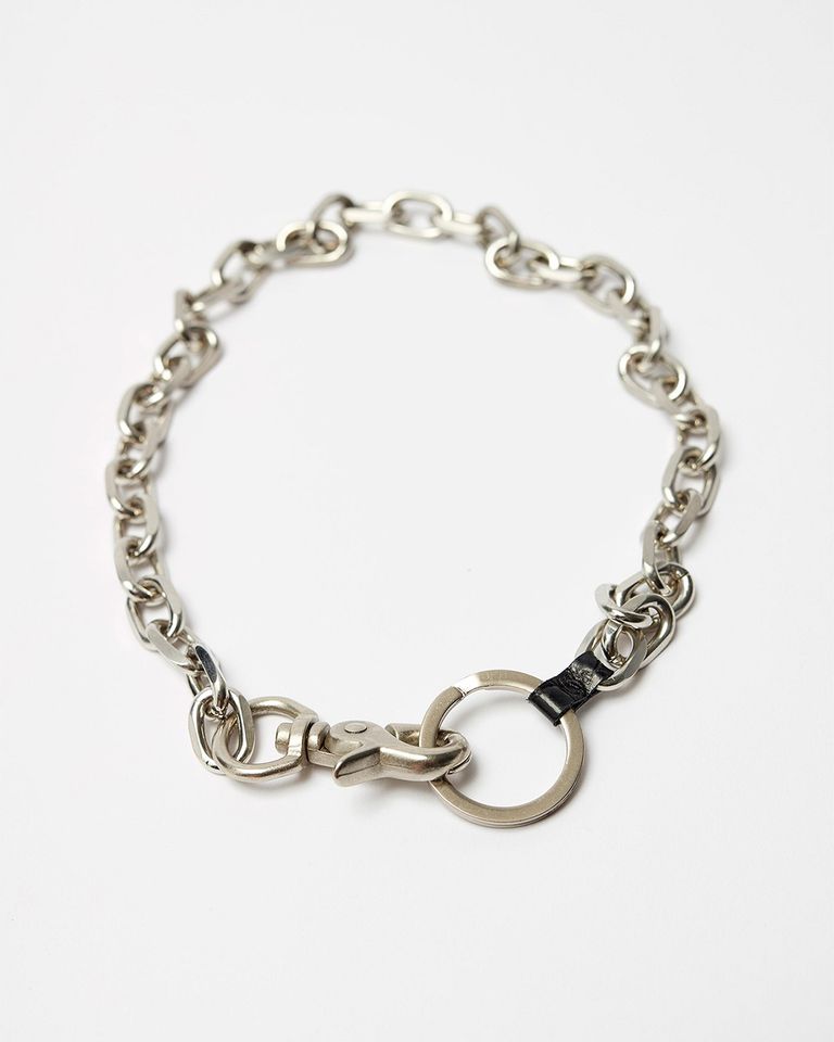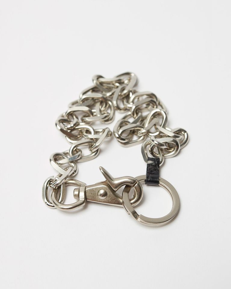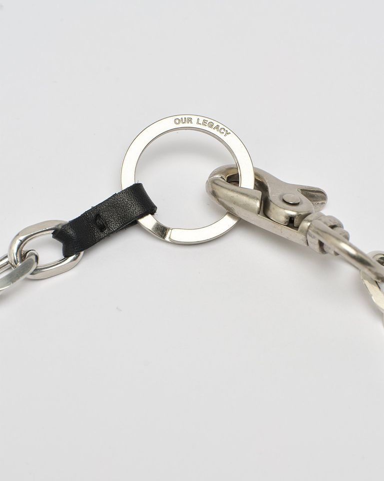 イタリア製のニッケルメッキ真鍮チェーンを使用し、ポルトガルで製造されたLadonキーホルダーは、日本製の留め具とWリングを備え、Our Legacyのロゴが刻印されています。
