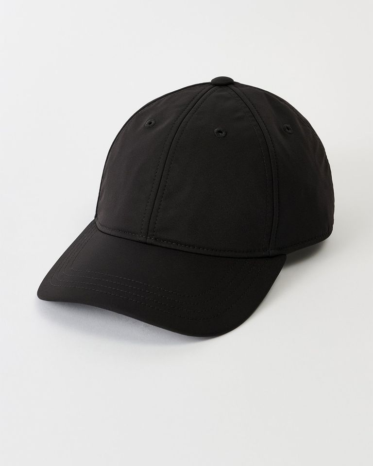 イタリア製のポリアミドとエラスタンの混紡生地を使用したこのボールキャップは、6パネル構造で、カーブしたつば、ステッチ入りのアイレット、OL刺繍、背面のストラップアジャスター、真鍮製の金具が特徴です。