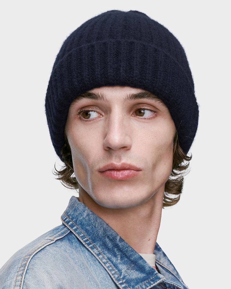 保温性と質感に優れた柔らかなウールで編み上げられたリブ編みビーニー。