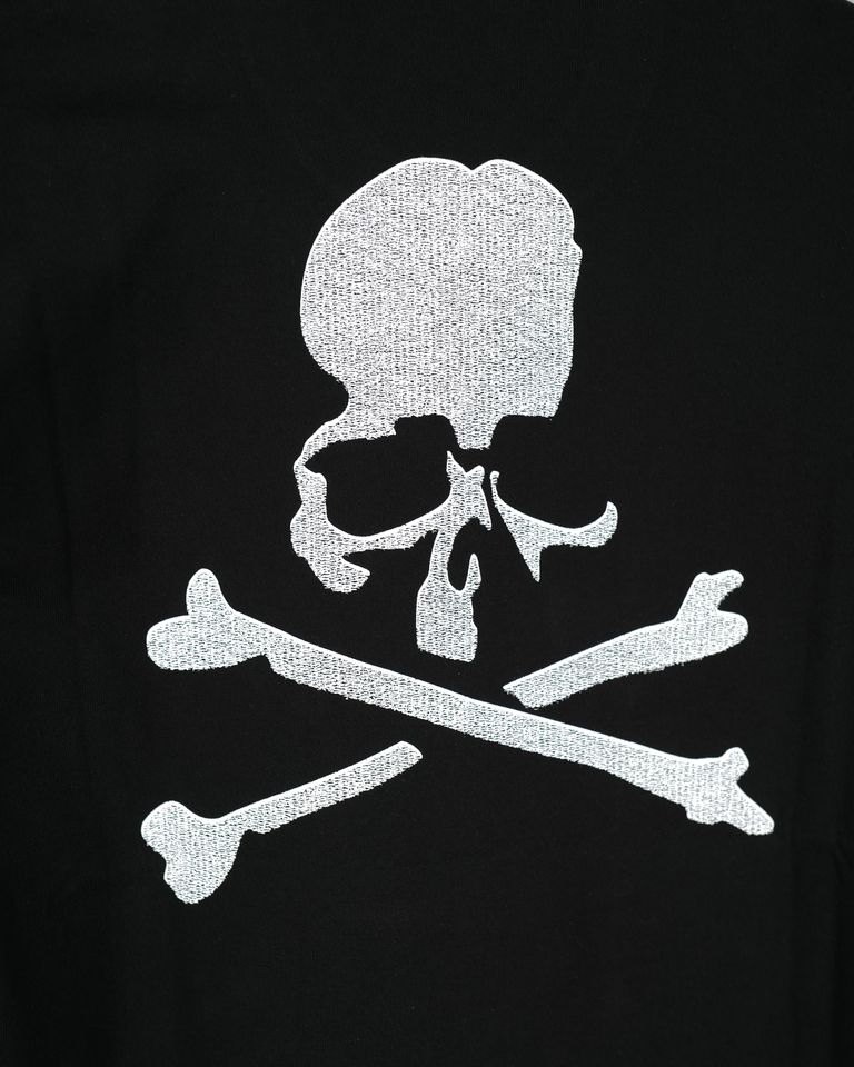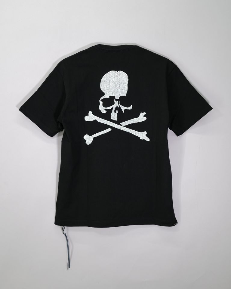 Regular fit short sleeve Tee made by original jersey knit fabric blends luxurious Suvin Gold and Giza cotton with advanced odor-neutralizing fibers that effectively combat unpleasant smells like ammonia. Embroidery-ish print LOGO on the front, SKULL on the back.