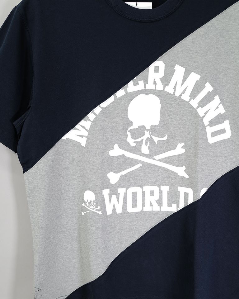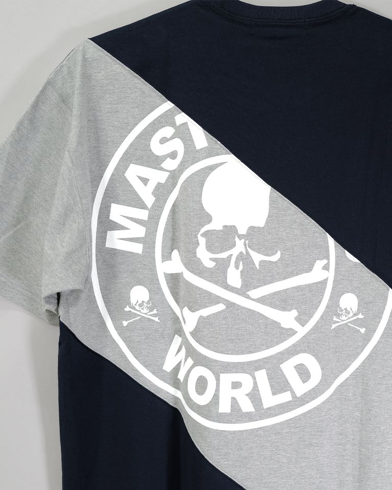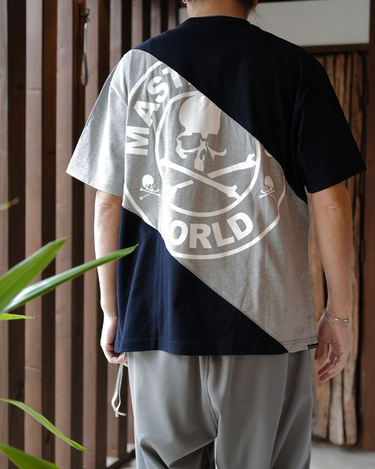 【MASTERMIND WORLD】 DIAGONAL BLOCKED SS TEE NAVY x TOP GRAY x NAVY