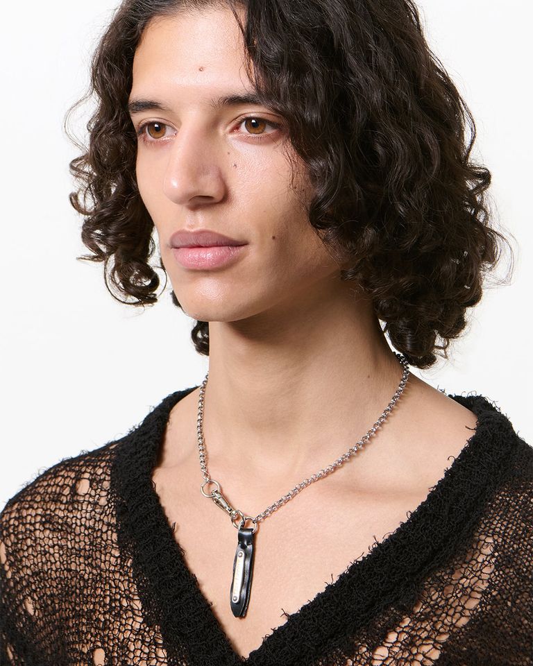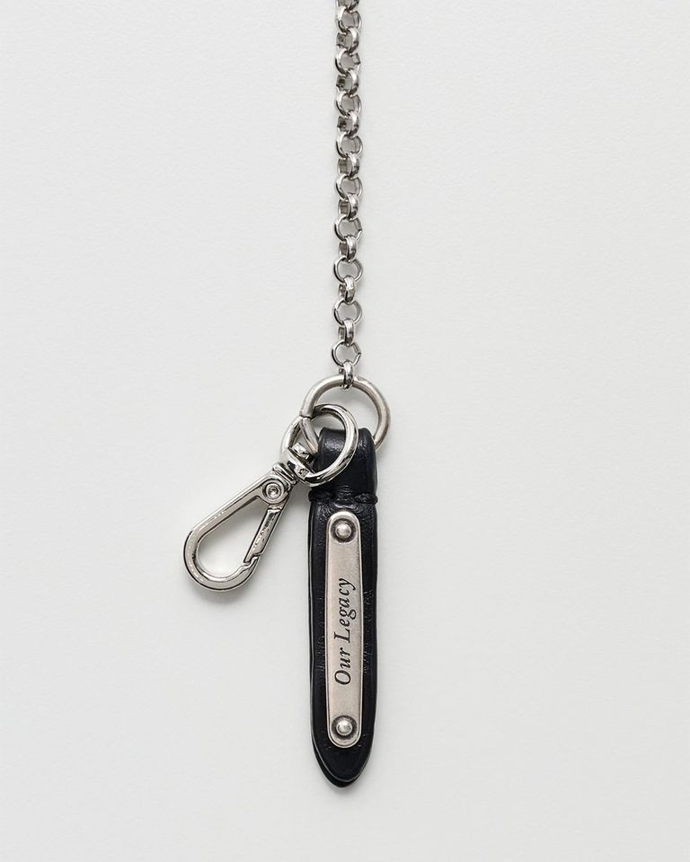ポルトガルで製造されたデリケート・ラドンは、メッキ加工を施した真鍮製の細リンクチェーン、リングと留め具、そして「Our Legacy」の刻印入りメタルプレートが付いた手縫いのレザータブが特徴です。