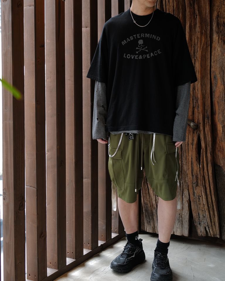 【MASTERMIND WORLD】 REVERSIBLE DISTRESSED TEE BLACK x TOP GRAY