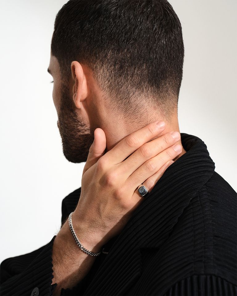 Kay Ring Larvikiteは、トム・ウッドの定番であるミディアムサイズのシグネットリングです。
