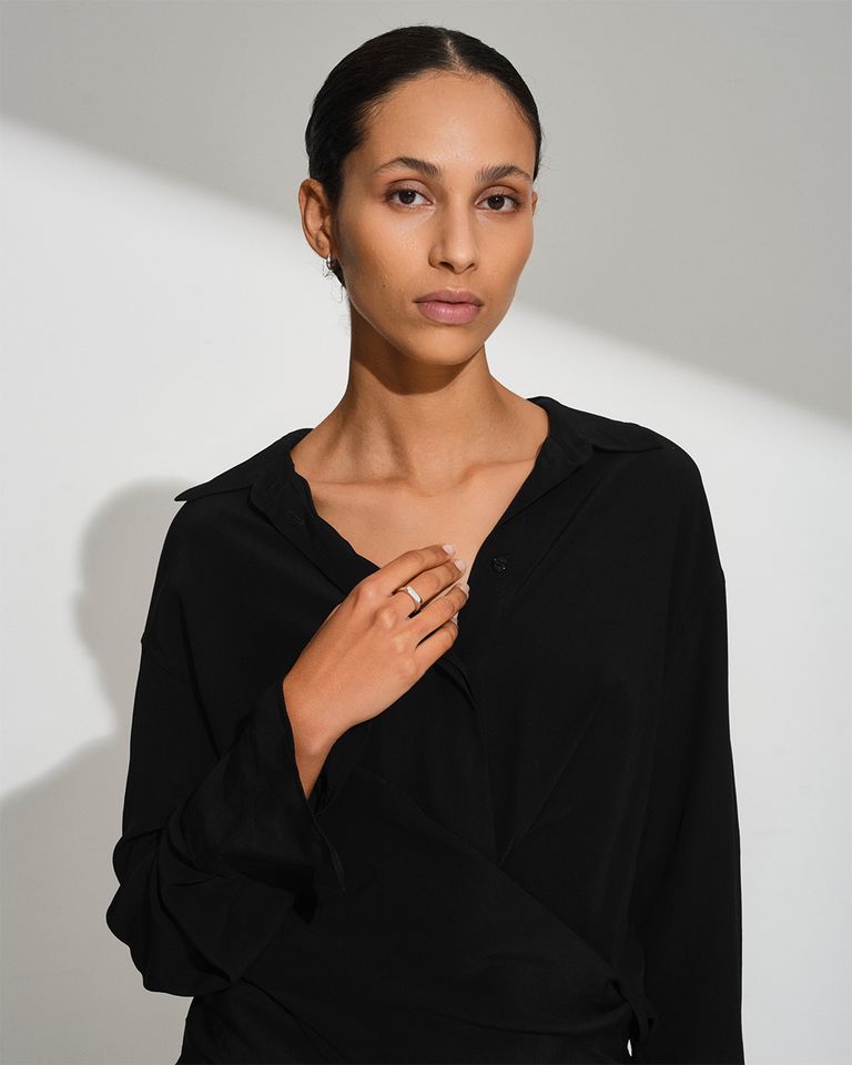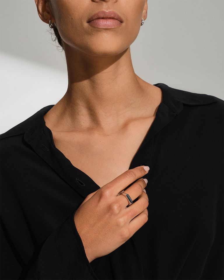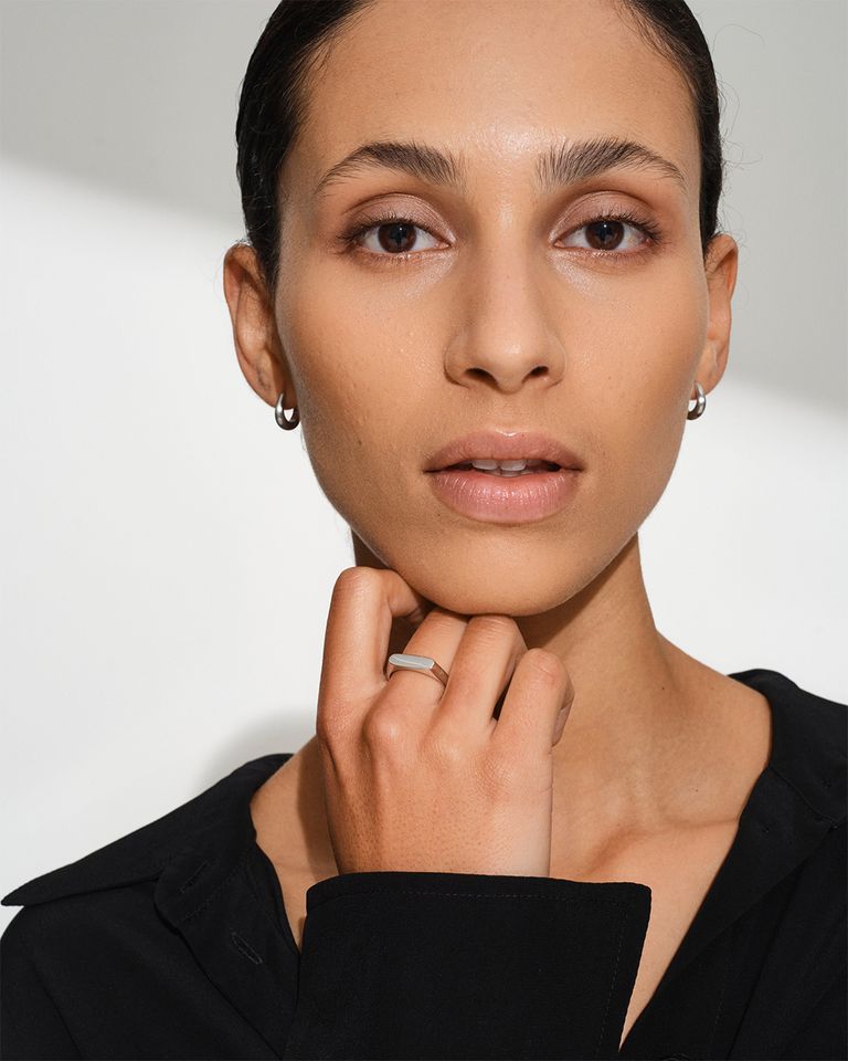 ポリッシュ仕上げのスリムな表面なので、他のトムウッドのシグネットリングと重ね付けが可能です。よりミニマルなスタイルを楽しむ場合は単体で着用してください。