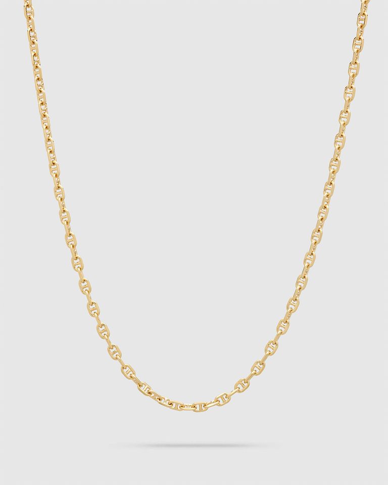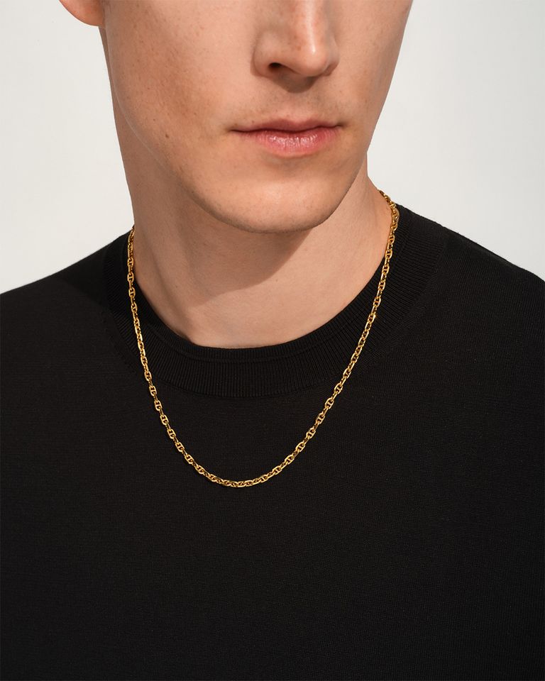 このチェーンはポリッシュ仕上げのスターリングシルバー925製で、18Kゴールドプレーティングが施されています。