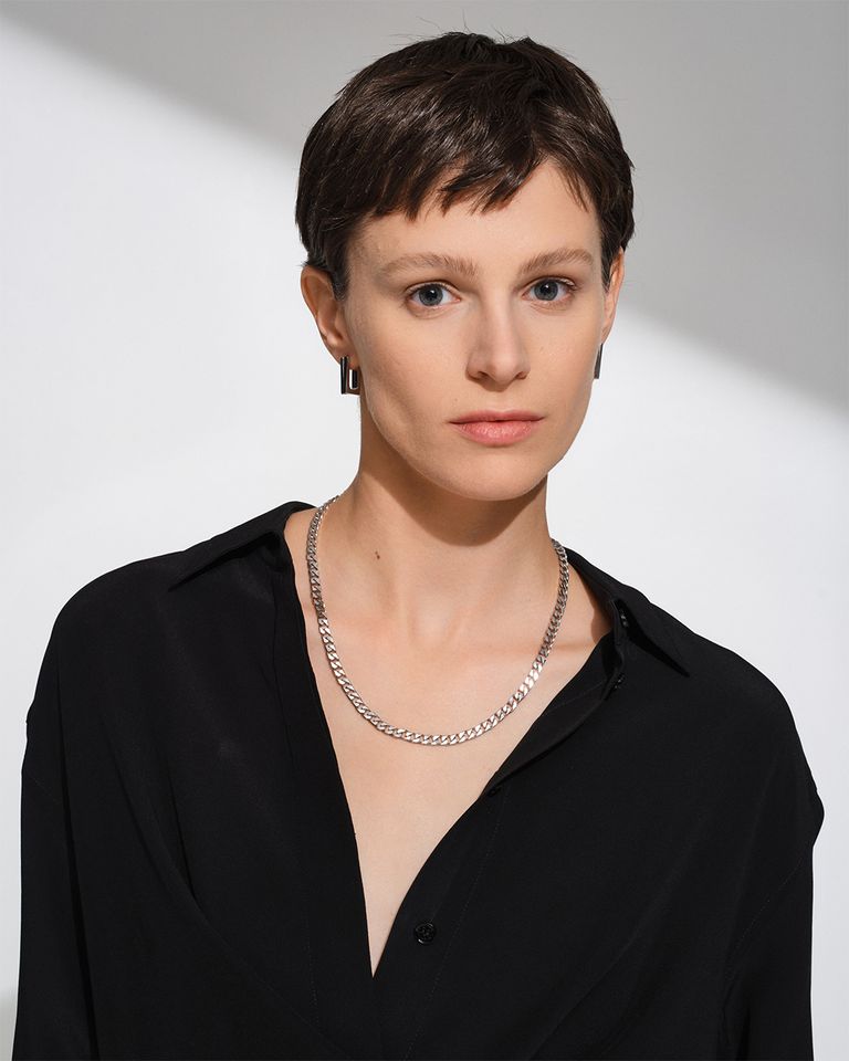 フランキーチェーンは、シャープなダイヤモンドカットのクラシックでモダンなネックレスです。モダンでユニセックスなスタイルのため、単体でも、トムウッドのコレクションの他のチェーンと組み合わせても使いやすいデザインです。