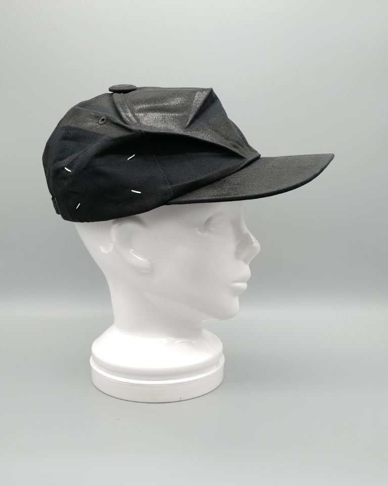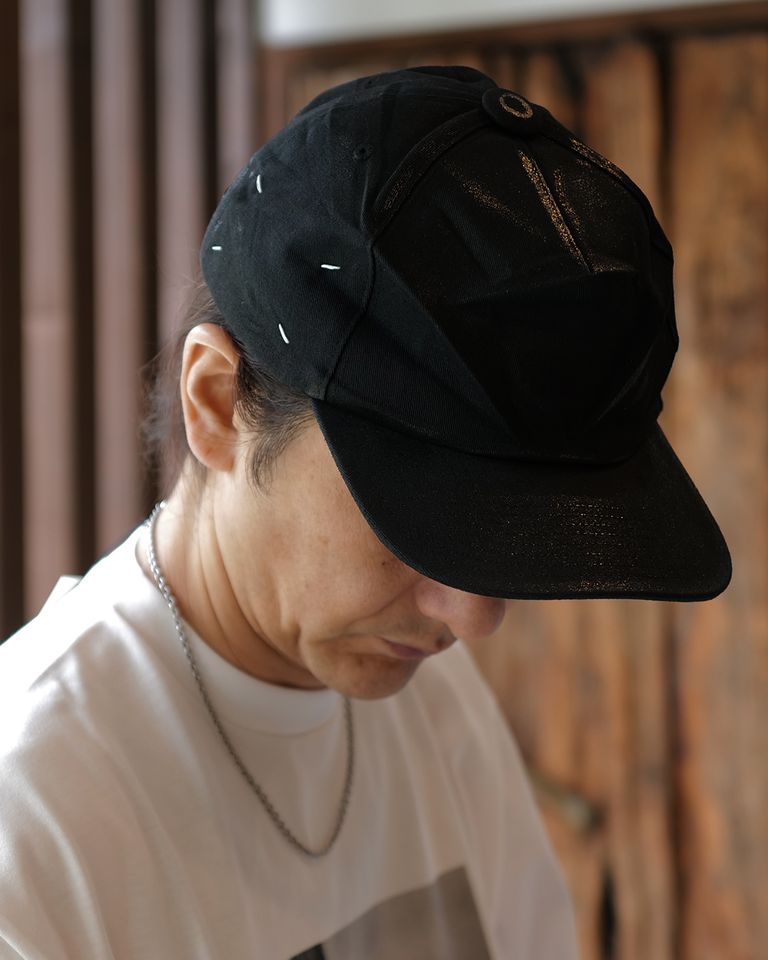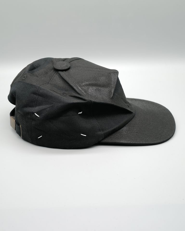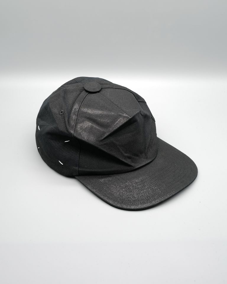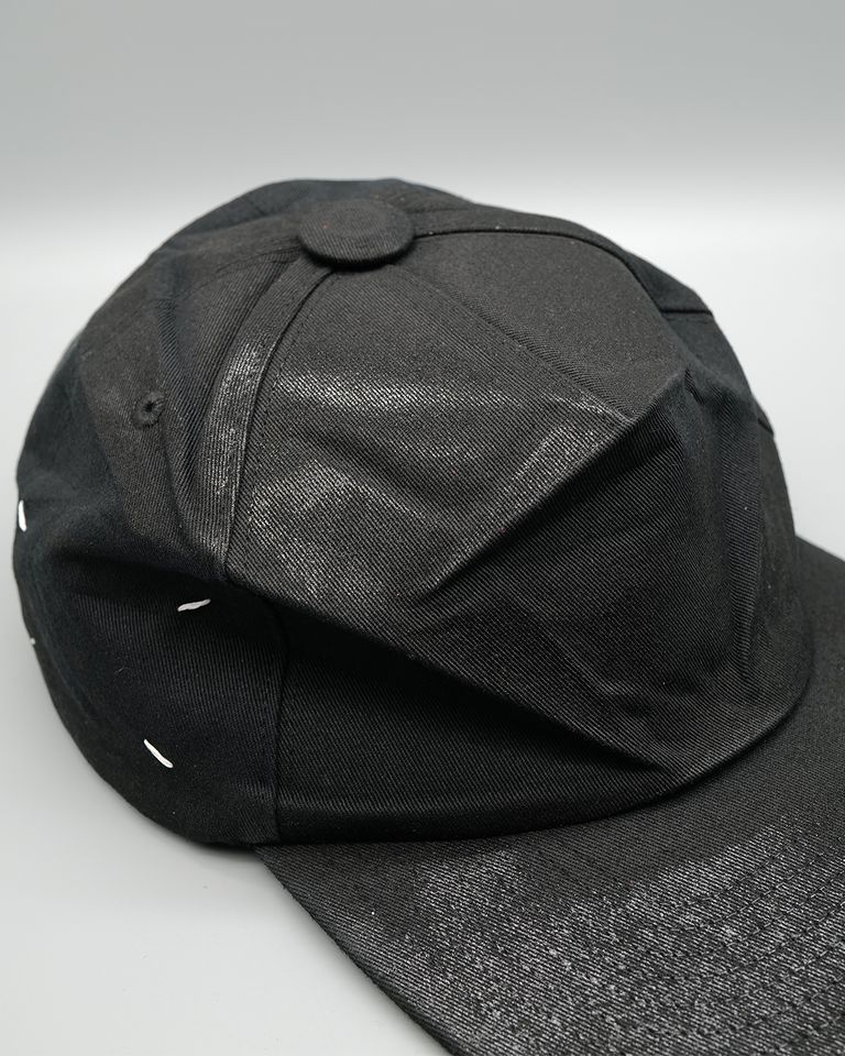 コットン素材のキャップにシワ加工と特殊なコーティングデザインのベースボールキャップ